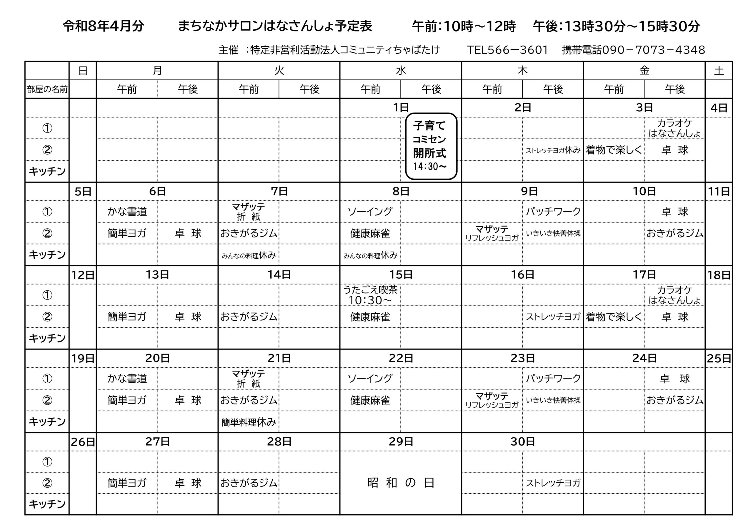 まちなかサロン“はなさんしょ” 4月号予定表