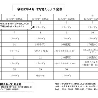 まちなかサロン ”はなさんしょ” 4月予定表