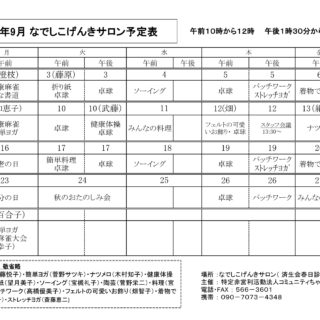 なでしこげんきサロン9月予定表