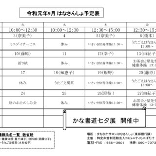 まちなかサロン”はなさんしょ” 9月予定表