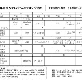 なでしこげんきサロン10月予定表