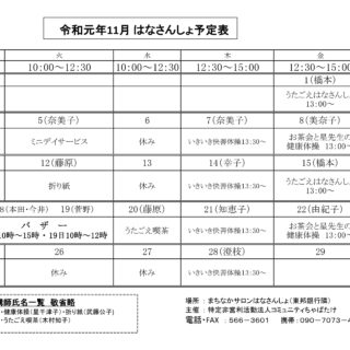 まちなかサロン”はなさんしょ” 11月予定表
