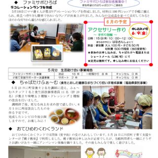 平成17年西福沢の山あいに5人の仲間と団体を立ち上げ、親子の居場所として地域ボランティアが始まりました。場所は川俣町羽山の森美術館近くの高台の空き民家、野山を駆け巡り元気に遊ぶ子どもたち、趣味を通して笑顔になっていくママたち。他町村から嫁いだママにはホッとできる場所が必要と感じて継続してきました。