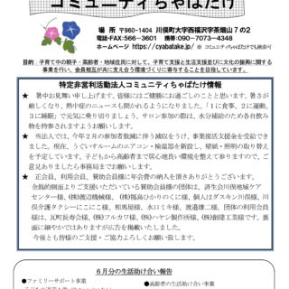 平成17年西福沢の山あいに5人の仲間と団体を立ち上げ、親子の居場所として地域ボランティアが始まりました。場所は川俣町羽山の森美術館近くの高台の空き民家、野山を駆け巡り元気に遊ぶ子どもたち、趣味を通して笑顔になっていくママたち。他町村から嫁いだママにはホッとできる場所が必要と感じて継続してきました。