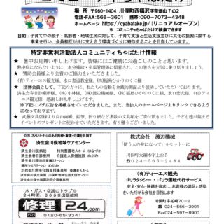平成17年西福沢の山あいに5人の仲間と団体を立ち上げ、親子の居場所として地域ボランティアが始まりました。場所は川俣町羽山の森美術館近くの高台の空き民家、野山を駆け巡り元気に遊ぶ子どもたち、趣味を通して笑顔になっていくママたち。他町村から嫁いだママにはホッとできる場所が必要と感じて継続してきました。